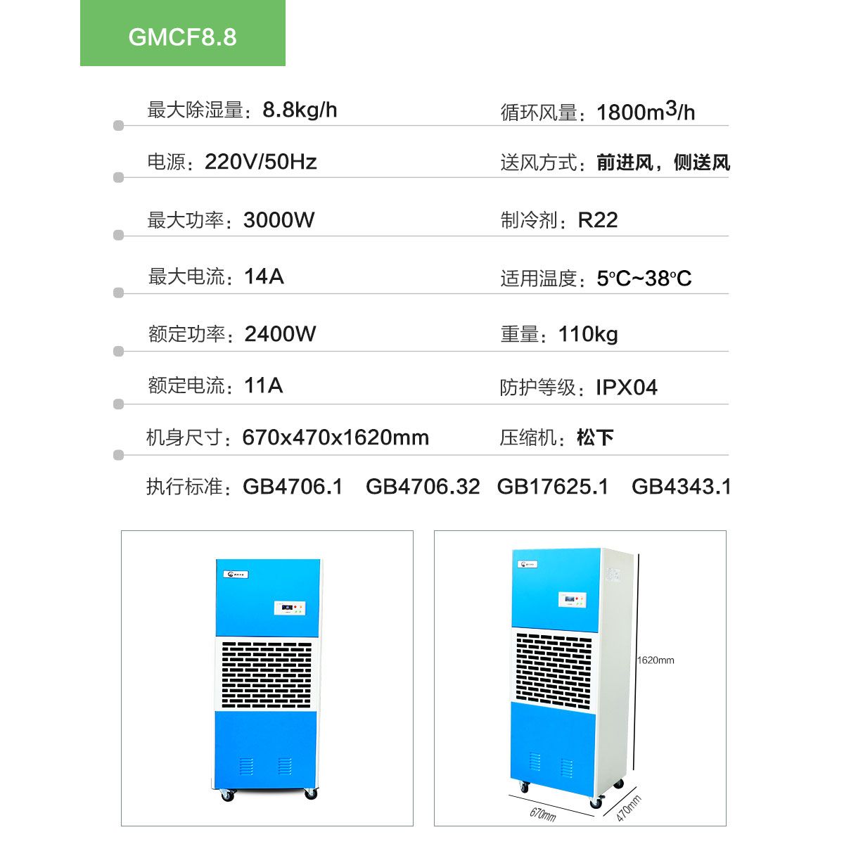 2.除湿风机采用成套离心风机,使空气快速循环,风量大低噪音,机身采用高强度钣